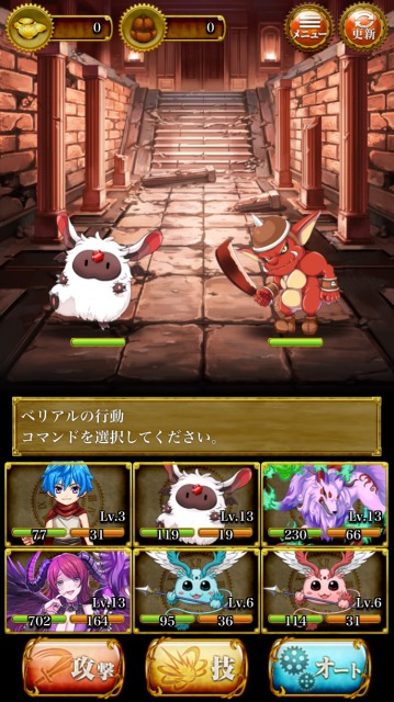 バトルはとってもシンプルなターン制。モンスターの中から5体選んで、一緒に戦うことができます。