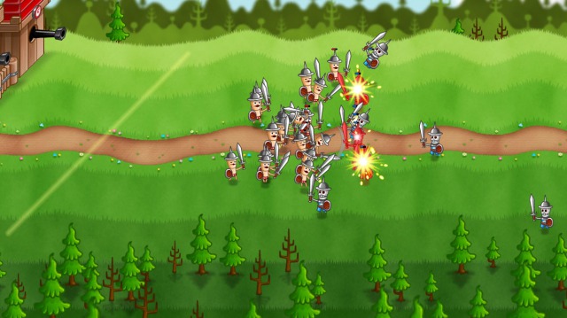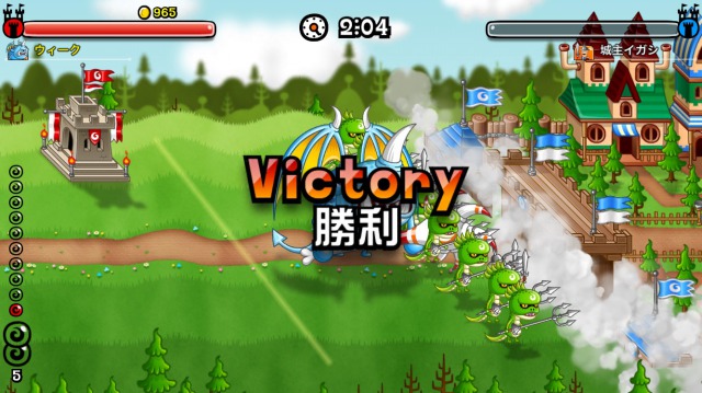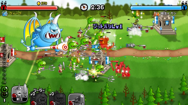 タップひとつで兵士を召喚でき、現れた兵士たちは自動で相手の城に向けて進軍していきます。